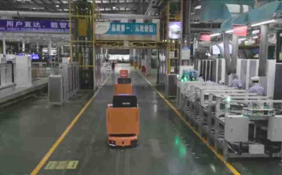 为车载冰箱物流配送打造的智能解决方案,,,包含产中物流通过潜伏举升AMR搬运至线边,,产后成品物流智能仓储,,,流程包含产中物流智能齐套入库,,,,线边安灯叫料AMR智能配送至线边,,,成品入库、、、、出库,,,,通过无人堆高车机器人,,智能仓储管理替代人工作业管理,,,实现更高存储、、、更高效率、、、、更具柔性化的解决方案。。