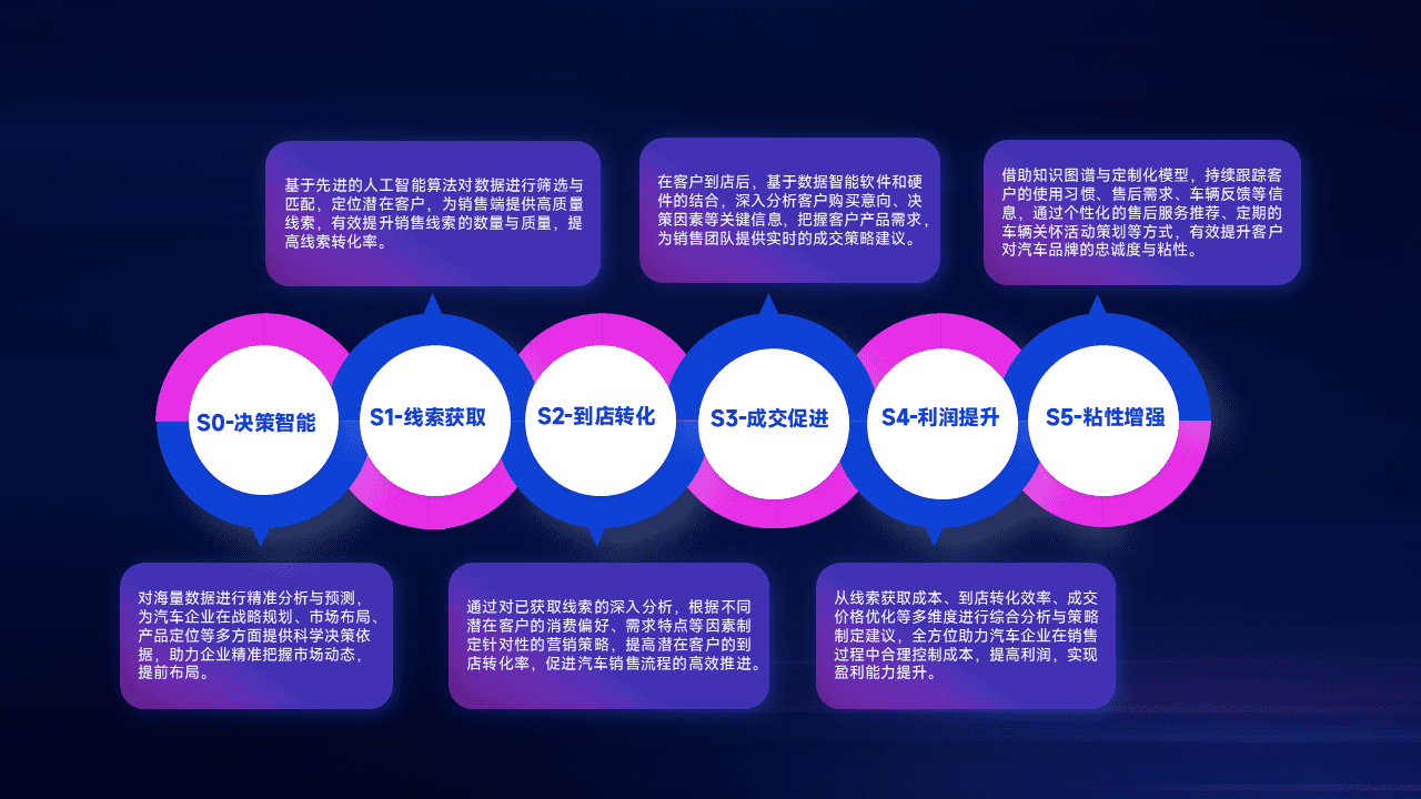 通过拓宽潜在客户来源、、、优化线索分配并提高到店转化率,,,以增强销售效率。。。。同时,,利用线索数据不断优化分析模型,,有效提升转化率,,,扩大营销影响力。。。。